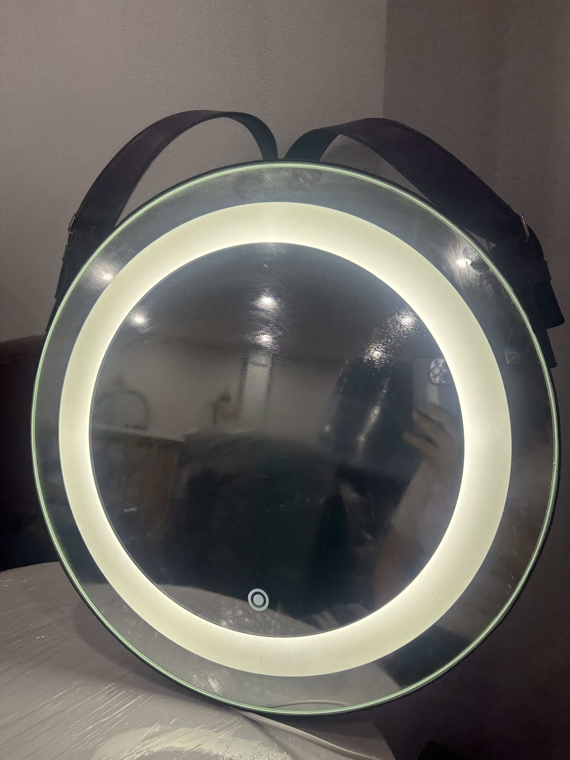 Gương treo dây da có đèn sz 50cm